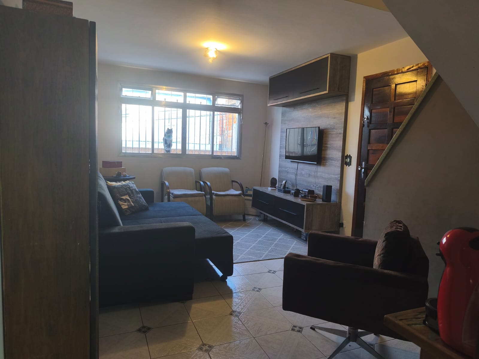 Sobrado a venda na Vila Gustavo, 04 dormitórios amplos, roupeiro no corredor, 01 guarda roupa de cerejeira sob medida com 04 portas, 02 banheiros, sala para 02 ambientes, cozinha espaçosa com gabinete planejado, lavanderia com armários, terraço grande, entrada lateral, 02 vagas de garagem, terreno 5x20, útil 170m2, tudo em ótimo estado, documentação em ordem aceita financiamento.